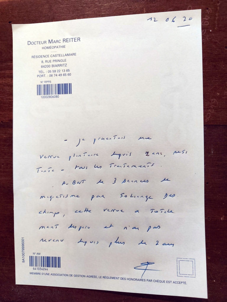 Traitement d’une grosse verrue plantaire pour laquelle la médecine traditionnelle ne pouvait rien :