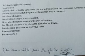 « Soly Ange je vous écris pour vous remercier de tout ce que vous avez fait, tout a changé pour moi et enfin je revis, ma fille a repris elle aussi le moral et n’a plus d’exzéma, votre magnétisme est très puissant même par photo, merci merci encore. »